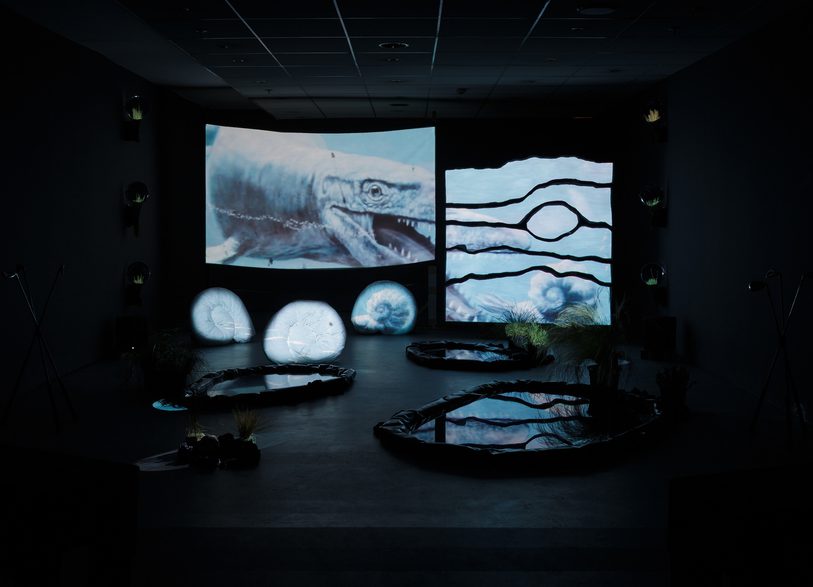 Hazel Brill, Shonisaurus Popularis (2018), installation view at Turf Projects, Croydon. Photo by Tim Bowditch. Courtesy of the artist