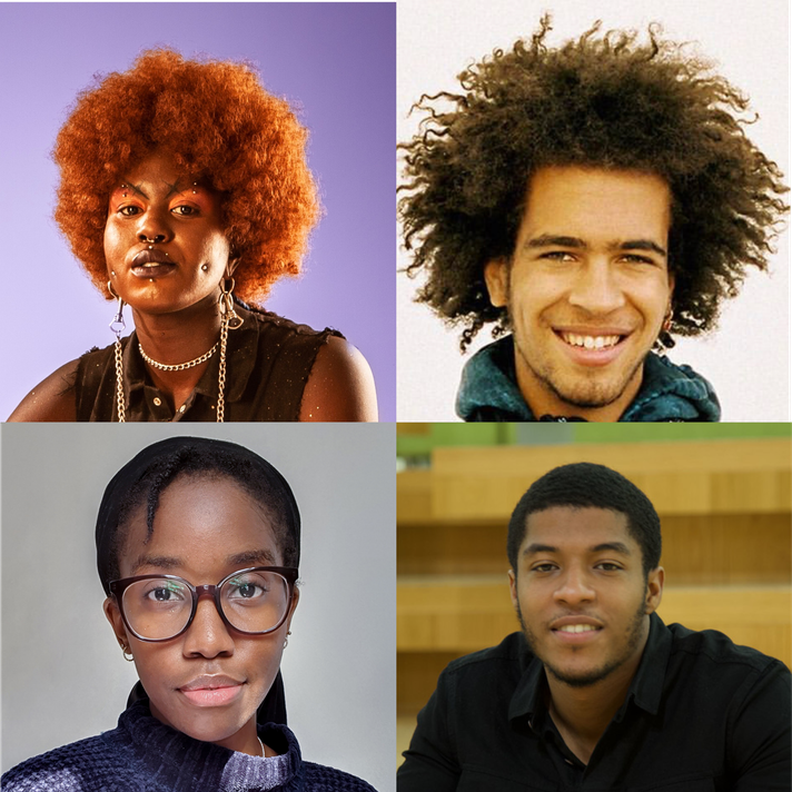 Composite of FLAMIN Animation 2021-2022 artists. Top left to bottom right: Mothy Muyobo, Toby Cato, Zainab Sanyang, Ezra Myers