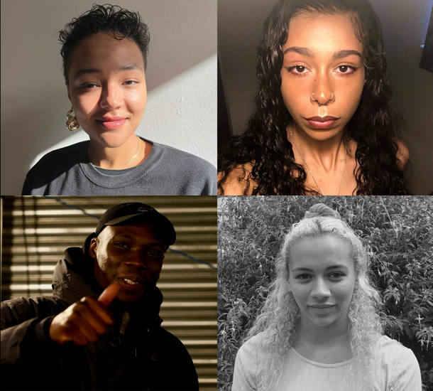 Composite of FLAMIN Animation 2022-2023 artists. Top left to bottom right: Isabel Barfod, Ruby Stoyle [ADORABAEL], Lamide Olusegun, Laina Deene