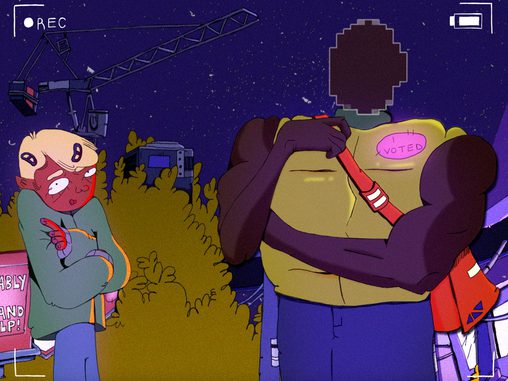 Governed by a malevolent state in cahoots with vampiric property developers and cyborg CCTV, the people are under pressure. Combining 2D animation, CGI and multiplane techniques, Curfew takes inspiration from jungle raves, graffiti watching, and Black British culture.