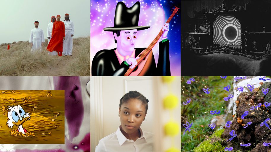 Composite of film stills from Jarman Award touring programme. Featuring works by (top left to bottom right): Julianknxx, Sophie Koko Gate, Karen Russo, Rehana Zaman, Ayo Akingbade and Andrew Black