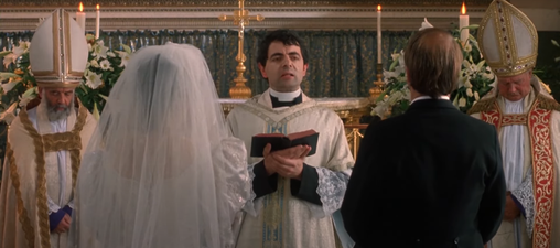 Rowan Atkinson as Father Gerald in Four Weddings and a Funeral