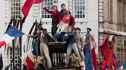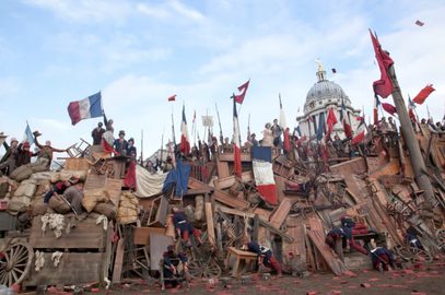 ‘We used The Old Royal Naval College for some key moments in LesMisérables, namely the funeral scene and the finale barricade moment. It was quite a challenge. We were filming during the university Easter break and it meant a very fast change over from the funeral to the barricade. Something that should have taken weeks to change had to be done in a couple of days and logistically was quite a head scratch, but we pulled it off. The barricade was constructed on top of long trailers, which were escorted through London by the Police. Once they were in place, set dressing was added around and on top of the trailers to create the mountain that the barricade became in shot. Hidden steps were also built inside, so that extras could climb up it to stand and sing.
