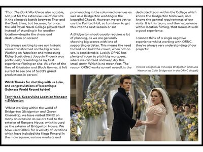 ‘Whilst working within the world of Bridgerton (Bridgerton and Queen Charlotte), we have visited ORNC on many an occasion as we are tied to the exterior of Rangers House, which is used as the exterior of Bridgerton House. We have used ORNC for a variety of locations which have included the Kings Funeral in the main square, various markets and promenading in the columned avenues as well as a Bridgerton wedding in the beautiful Chapel. However, we are yet to use the Painted Hall, so I am keen to get this into the next season or so!