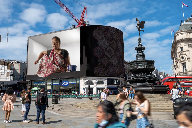 This November, London’s Piccadilly Circus will play host to a new work commissioned by CIRCA and presented in collaboration with The Film London Jarman Award. Hetain Patel’s Baa’s House 11, showcasing a first-generation immigrant matriarch at work, will be broadcast on Piccadilly Circus Lights Screen at 20:21 each day throughout November 2021.
