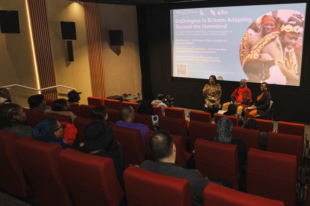 'GaDangme in Britain: Adapting Beyond the Homeland' hosted by GaDangme Researcher and Medical Herbalist Naa Adjeley Tsofanye, Ade Sawyerr member of Nikasema Asafo and Joana Awushie Humphreys who is the Chairlady New Generation GaDangme Association. They shared and responded to home movies containing Homowo, Ngmayem and Asafotufiam celebrations, highlighting the joy and dedication of the organisers who now in their 70s continue to educate people on the history, complexities and traditions of GaDangme people.