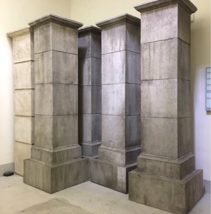 Somerset House has a few totems that are mainly used for directions, and for advertising our exhibitions, and production companies often ask us to remove them. As they are fragile and could easily be damaged during transportation or storage, we have found a solution that means we largely no longer have to move them. We now use bespoke covers, which are designed to look like stone pillars, so that they blend in perfectly with the period backdrop.