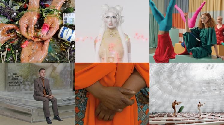 Hooded figures dance in an abandoned supermarket in Larry Achiampong’s Beyond the Substrata whilst Georgina Starr transports us to a surreal and colourful world inhabited by singing women, tarot cards and disembodied oracles. A charity shop is the setting for Guy Oliver’s humorous musical about cancel culture whilst Adham Faramawy mixes found footage with imagery of dancers on Wanstead Flats as they explore ideas of roots, naturalisation and heritage through the taxonomy of plants.