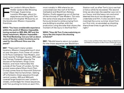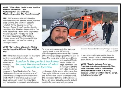 WNH: “You have considerable experience within the world of Mission: Impossible, having worked on MI5, MI6, MI7 and the latest instalment, Mission: Impossible - The Final Reckoning. Can you tell us about some of the key London locations you’ve used for the different films over the years?”