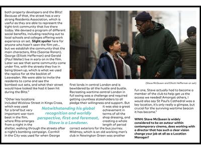 “Other key locations included Wicklow Street in Kings Cross, which was used for a brief but very important war-torn beat in the film, where Rita emerges from a night in the shelter, walking through the streets after a night’s bombing campaign. Cornhill in the City was used for when George first lands in central London and is bewildered by all the hustle and bustle. Recreating wartime central London in full swing was a challenge and required getting countless stakeholders to all pledge their willingness and support. But it was also a great achievement in terms of all the shop dressing, and creating a whole length of period correct exteriors for the bus journey. Mildmay, which is an old working men’s club in Newington Green was another (Steve McQueen and Elliott Heffernan on set) fun one, Steve actually had to become a member of the club to help get us the access we needed! Amongst others, I would also say St Paul’s Cathedral was a key location, it’s only really a glimpse, but crucial for the surviving wartime beacon it has become.”
