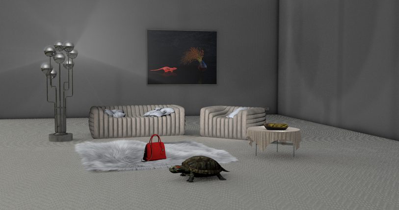 Adonia Bouchehri is interested in the way in which images influence our thought patterns and affect perception. Her work explores the relationship between image and touch and the tension between the familiar and the foreign. She works with video and CGI to create environments that can traverse geographical locations, opening up new ways of inhabiting spaces.