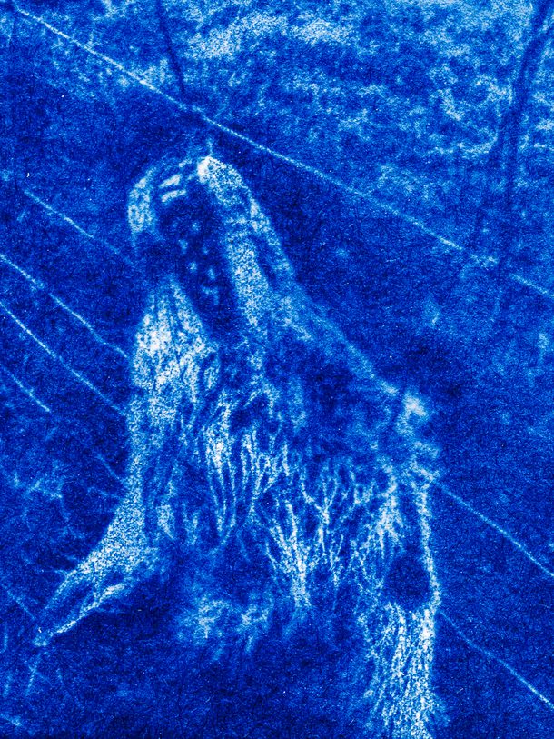Edd Carr Kitsune (2023), animation still. Cyanotype on Japanese paper.