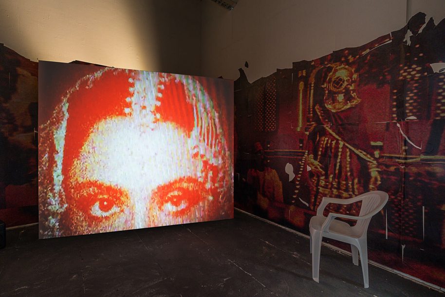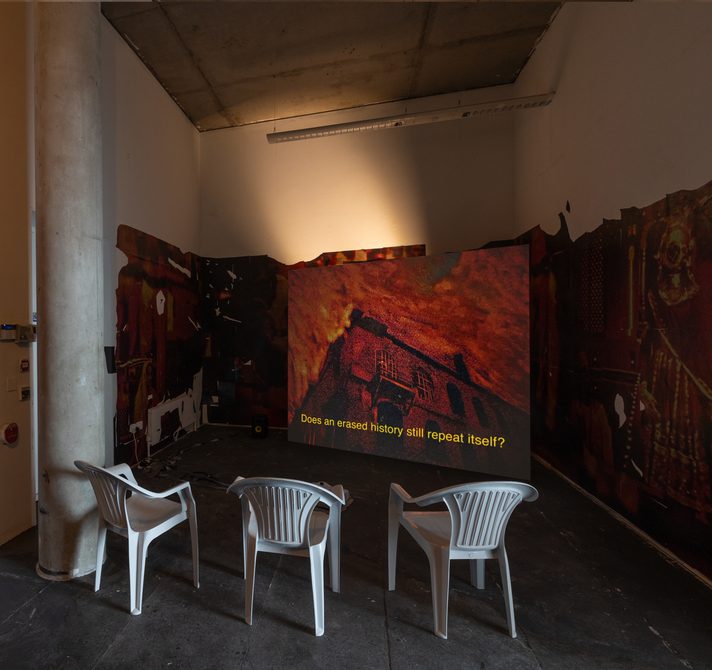 Harmeet Rahal, Chori Chori [CAMRip] (2023), installation view at Goldsmiths University of London. Photo by Fergus Carmichael