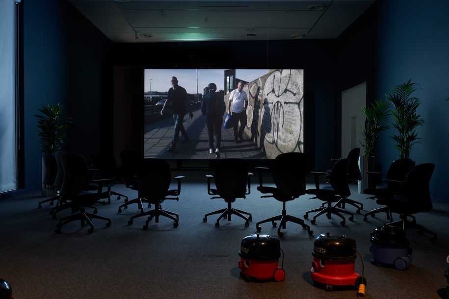 Larry Achiampong, Wayfinder (2022) installation at BALTIC Centre of Contemporary Art, Gateshead. © Larry Achiampong. Courtesy of The Artist, LUX, DACS & Copperfield London & Copperfield London. Commissioned By Turner Contemporary with BALTIC Centre of Contemporary Art and MK Gallery. Photo by Reece Straw.