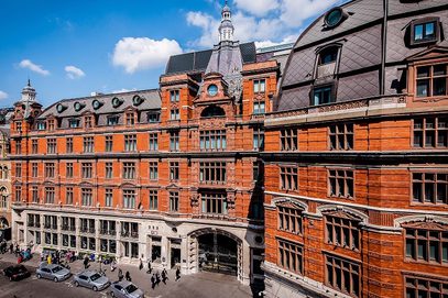 Built in 1884 as the Great Eastern Hotel on the site of the old Bethlehem Hospital, the hotel has five bars and restaurants, 15 different event and meeting spaces, a health club, and over 250 rooms and suites. Spaces available for filming vary between modern and Victorian and include a magnificent Grade II listed ballroom with a stained glass dome that managed to survive both WWI and WWII; the modern Andaz Studio with open plan kitchen and exposed wine cellar; an authentic Japanese restaurant; a traditional semi-wood panelled English pub; and an elegant wine bar. The hotel is home to a ‘Guggenheim’ style feature that goes up across all floors, and the fifth and sixth floor offer views over Bishopsgate, Liverpool Street, the City and the stained glass dome.