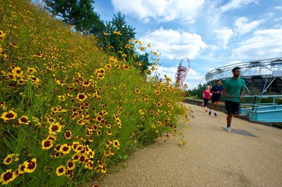 The Park’s waterways run throughout, whilst mostly managed by the Canal and Rivers Trust, there is a section of the River Lea, which is under LLDC’s management. The north park is defined by it is more rural setting with meadows of wildflowers, winding footpaths, and reed planting along the river.