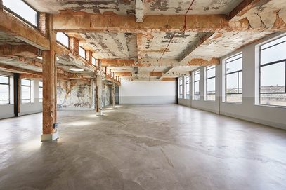 The site’s recent renovation celebrates the raw and functional architecture of the Royal Docks, from the exposed brick walls that tell the building’s layered history to the original concrete floors and exposed steel pillars. Named after the factory-style light wells in the roof beams that flood the main space with natural light, making it a natural home for artists and emerging creatives.